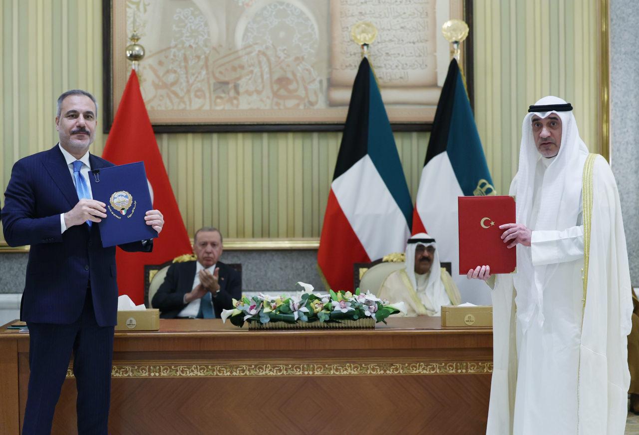 Kuveyt’te Cumhurbaşkanı Recep Tayyip Erdoğan ve Kuveyt Emiri Şeyh Meşal el-Ahmed el-Cabir es-Sabah’ın huzurunda iki ülke arasında toplamda 4 yeni anlaşma imzalandı.
