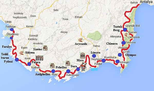 Antalya’dan başlayıp Akdeniz kıyılarını takip eden bu rota, zengin tarihi mirası ve eşsiz doğal güzellikleriyle her yıl dünyanın dört bir yanından yürüyüşçüleri cezbediyor. Antik Likya kentlerini birbirine bağlayan yol; Patara, Xanthos, Olympos, Kayaköy, Faralya ve Kabak Koyu gibi duraklarıyla tarih ve doğayı bir arada keşfetmek isteyenler için unutulmaz bir deneyim sunuyor.