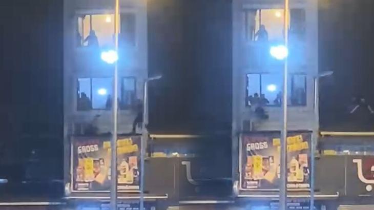 Çatıya düşen kişi ayağa kalkarak, o sırada çatıda bulunan başka bir kişiyle birlikte uzaklaştı. Kavga bina dışında da devam ederken, sokakta bulunan ve elinde bıçak bulunan başka bir şüpheli binadan çıkan kişiyi uzun süre kovaladı. O anlar cep telefonu kamerasına yansıdı.